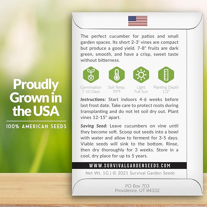 3 Packs Spacemaster Cucumber Seed for Planting - Packet with Instructions to Grow Container Friendly Cucumbers in Your Home Vegetable Garden - Non-GMO Heirloom Variety - Survival Garden Seeds