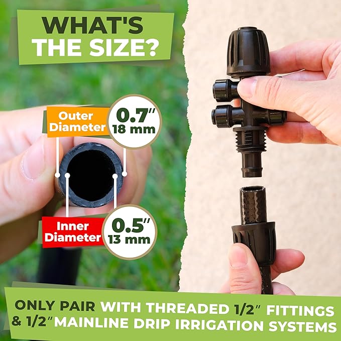 - Create your garden watering system with high-quality drip irrigation parts easier than ever. The 1/2 tubing can serve as the main drip irrigation 1/2 inch tubing for your drip irrigation kit and water your plants efficiently. Branch out with the 1/4 irrigation tubing and connect it to the drip irrigation emitters. Your DIY home irrigation system enhances plant growth, making garden care more enjoyable. Get ready to enjoy a thriving garden – all thanks to our easy-to-use 1/2 inch irrigation tubing