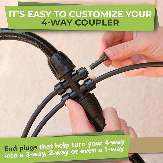 - Make your garden watering system easier than ever: Use the Carpathen 4-ways 1/2 drip irrigation fittings to divide your 1/2 tubing (0.47’’ ID and 0.59’’) into several 1/4’’drip tubes (.28" OD x .16" ID) at once. Customize your garden irrigation system with the 1/4“ t shape barbed tubing splitter and add the 1/4’’ end cap to prevent water from flowing out. Enjoy healthier plants with less cost and work!