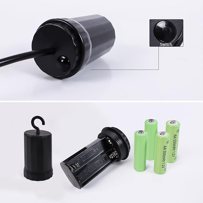 - 【With 6 Hours Timer】There are 2 lighting modes: constant lighting and 6 hours timing. The ON/OFF/Timer button is on the battery box(need 2 AA batteries, battery not include).