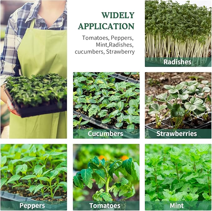 - 【Perfect for Seeds Growth】This seedling starter trays are perfect for promoting the growth of various seeds, whether it's vegetables, flowers, or herbs, providing an excellent nurturing environment for your seeds to flourish into strong and vibrant seedlings. The transparent cover allows you to observe their growth at every stage, ensuring you can monitor their progress and provide the best care for their development.