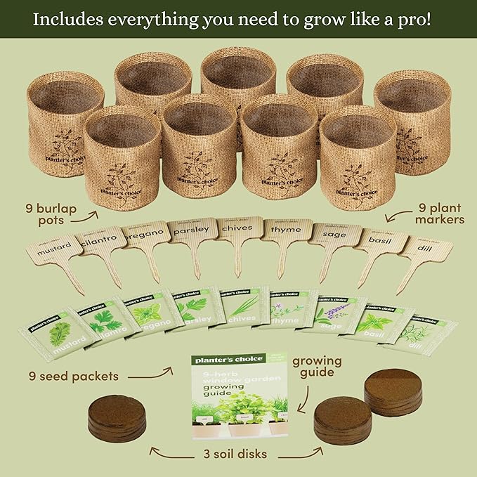 - THE ULTIMATE KIT: You get everything you need to start and sustain your herb garden. From seeds to full bloom, our kit ensures a seamless, hassle-free gardening experience. Grow Dill, Basil, Chives, Thyme, Parsley, Oregano, Cilantro, Sage, and Mustard.