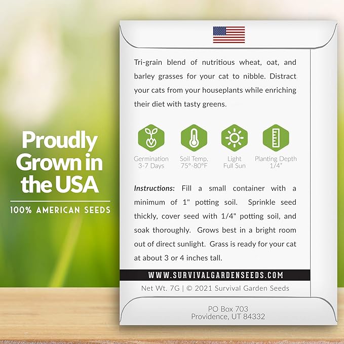 Cat Grass Seed for Planting - 5 Packets with Instructions to Plant & Grow Greens for Your Pet Indoors or Outdoors in a Container or Garden - Non-GMO Heirloom Variety - Survival Garden Seeds