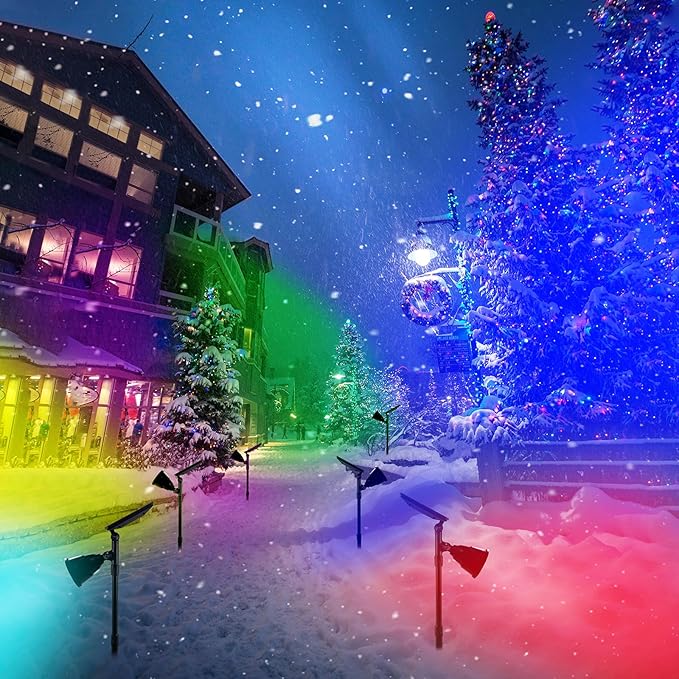- VERSATILE CONTROL: Solar spot lights outdoor waterproof offers 9 dynamic modes, including 7 fixed colors and 2 engaging color cycle. Activate it with a long press, effortlessly toggle modes with a short press, providing unparalleled flexibility at your fingertips