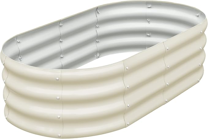 SnugNiture Galvanized Raised Garden Bed, 4x2x1ft Oval Metal Planter Box for Planting Outdoor Plants Vegetables