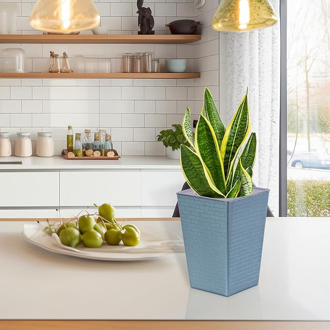 2 Pieces 6 Inch Self Watering Planter, Plastic Flower Pots with Inner Pot Indoor Plants Brick Pattern Flowerpot for Indoor Plants, African Violets, Flowers, Herbs (Antique Silver)