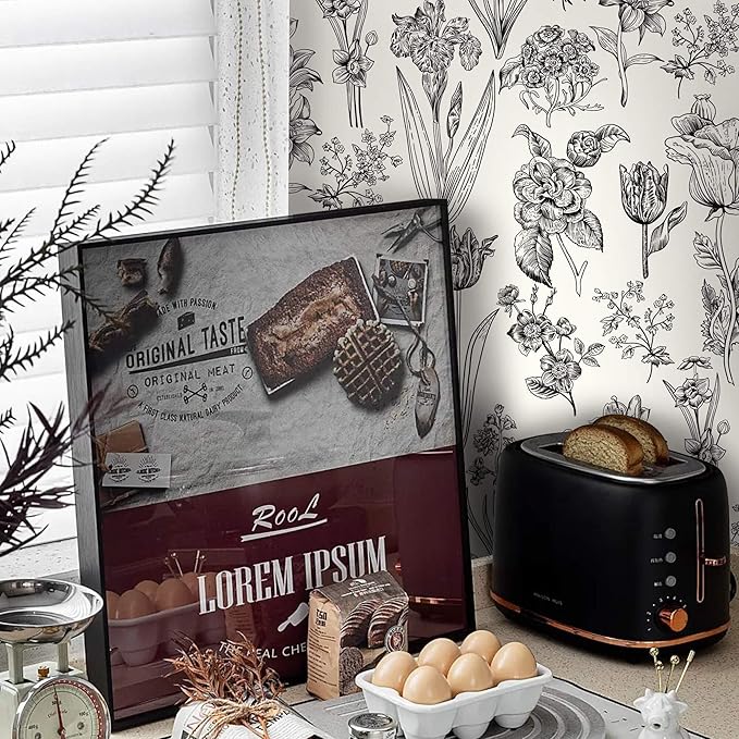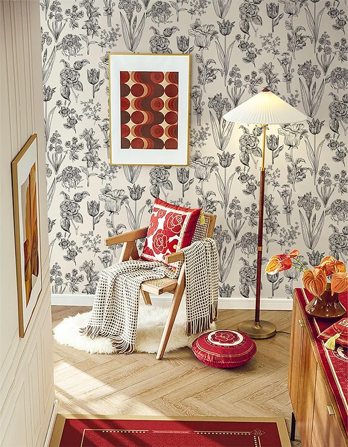 - [EXCLUSIVE DESIGN]-Beige base paper with dark brown lines outlined in a vintage floral pattern, retro and elegant, which is more harmonious with warm colored furniture.