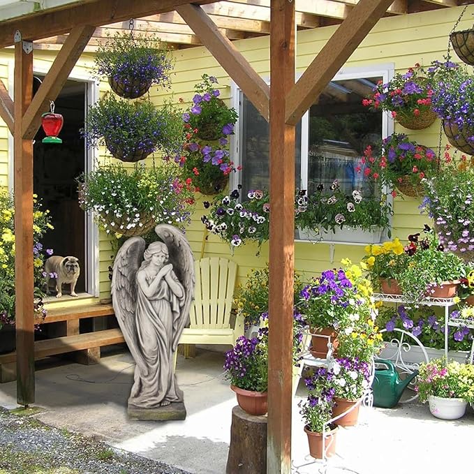 - [GARDEN ANGEL STATUES OUTDOOR]This angelic statue would be the perfect gift for family and friends looking to liven their garden, yard, porch, or patio and spread joy within their space. Let it serve as a reminder of God's endless, unconditional love for his people.