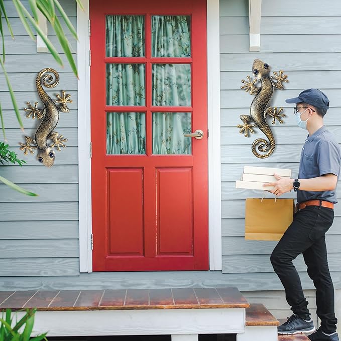 - 【Gecko Wall Art 】 - The delicate hollowed out patterns of the Lizard is, giving the work texture and depth and perfect for indoor decoration like living room, bedroom, balcony and for outdoor decoration like fence, porch, garden wall. Also, Lizards with the meaning of good fortune are good presents for your friends or family.