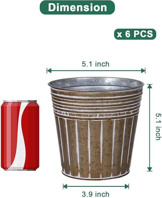 - 【Size of Metal Pots】There are 6pcs metal planters in a package, Topper opening diameter 5.1 inch, bottom diameter 3.9 inch, barrel high 5.1 inch.