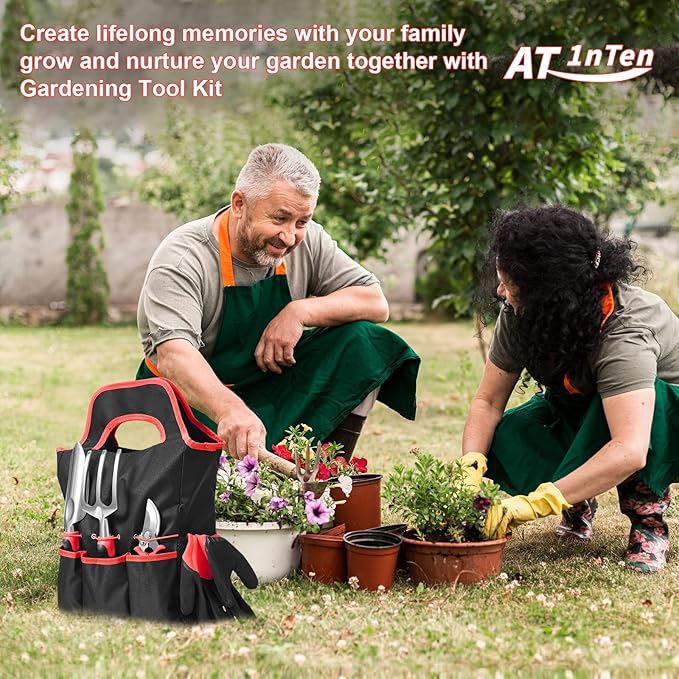 - ππππππππ ππππππ πππππ & ππππππππ ππππ πππ:Upgrade your gardening game with AT1NTEN's 8-pack garden tool set. Say goodbye to cheap, unreliable tools and get everything you need for a perfect garden. The durable material allows you to work in any soil, even hard and gravelly ones, while the non-slip rubber grip ensures comfortable and secure handling for long periods of time. Don't settle for less - with the enlarger tote bag, 15.35*19.3 inch make store a breeze.