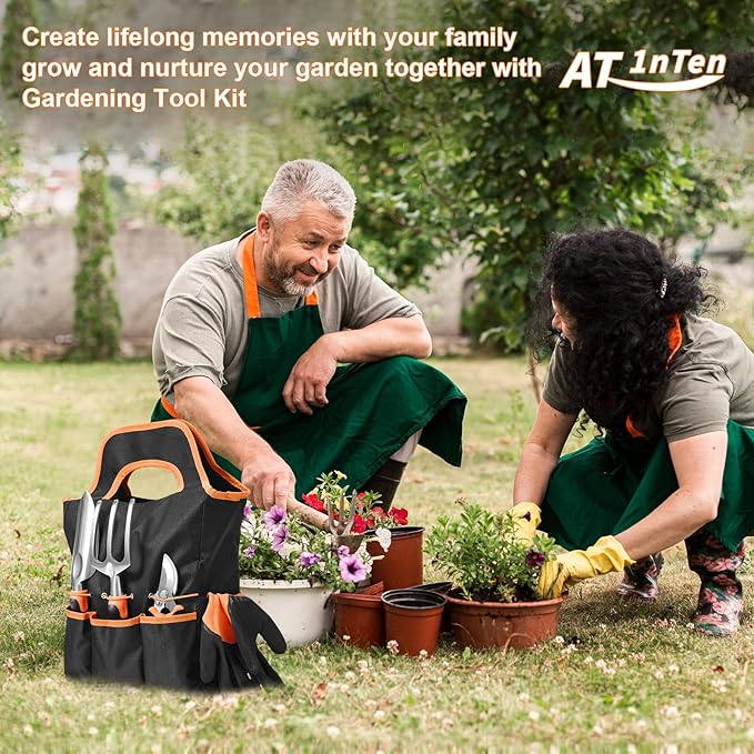 • 𝐔𝐏𝐆𝐑𝐀𝐃𝐄𝐃 𝐆𝐀𝐑𝐃𝐄𝐍 π“πŽπŽπ‹π’ & 𝐄𝐍𝐋𝐀𝐑𝐆𝐄𝐃 π“πŽπ“π„ 𝐁𝐀𝐆:Upgrade your gardening game with AT1NTEN's 8-pack garden tool set. Say goodbye to cheap, unreliable tools and get everything you need for a perfect garden. The durable material allows you to work in any soil, even hard and gravelly ones, while the non-slip rubber grip ensures comfortable and secure handling for long periods of time. Don't settle for less - with the enlarger tote bag, 15.35*19.3 inch make store a breeze.