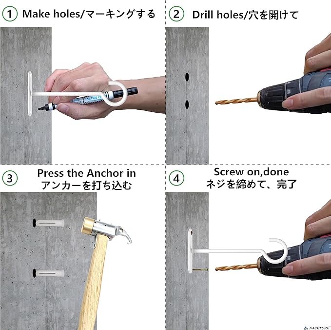 - 🔨 STURDY AND DURABLE CONSTRUCTION - NACETURE Plant hanger hook design ensures stability and strength, suitable for interior and exterior use, indoor plant hangers from ceiling, kitchen, balcony, garden, or any place in your home.