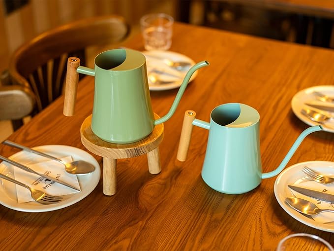 - 【COMFORTABLE WOODEN HANDLE】Our indoor watering can has a round comfortable wooden handle. It is easy to grasp and won't hurt your hands. Also, our stainless steel watering can has a built-in open-top design, which is convenient for refilling water.an exquisite and light body design, our watering pot serves as a decoration.