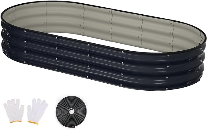 - DURABLE DESIGN: This galvanized raised garden bed, with a Zinc-Aluminum coating, is designed to enhance longevity and withstand various environmental conditions. The coating helps prevent oxidation and increases surface hardness. Its thickened design and oval shape ensure even pressure distribution, making it highly resilient against external forces. Reusable for years