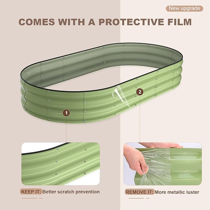 - DURABLE DESIGN: This galvanized raised garden bed, with a Zinc-Aluminum coating, is designed to enhance longevity and withstand various environmental conditions. The coating helps prevent oxidation and increases surface hardness. Its thickened design and oval shape ensure even pressure distribution, making it highly resilient against external forces. Reusable for years