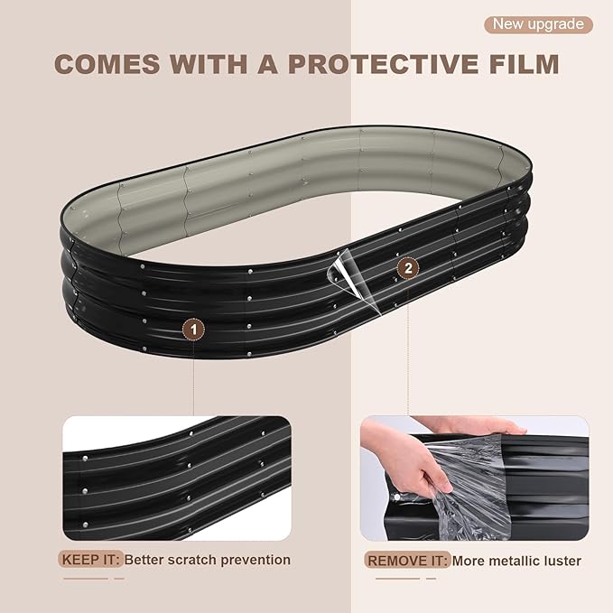 - DURABLE DESIGN: This galvanized raised garden bed, with a Zinc-Aluminum coating, is designed to enhance longevity and withstand various environmental conditions. The coating helps prevent oxidation and increases surface hardness. Its thickened design and oval shape ensure even pressure distribution, making it highly resilient against external forces. Reusable for years