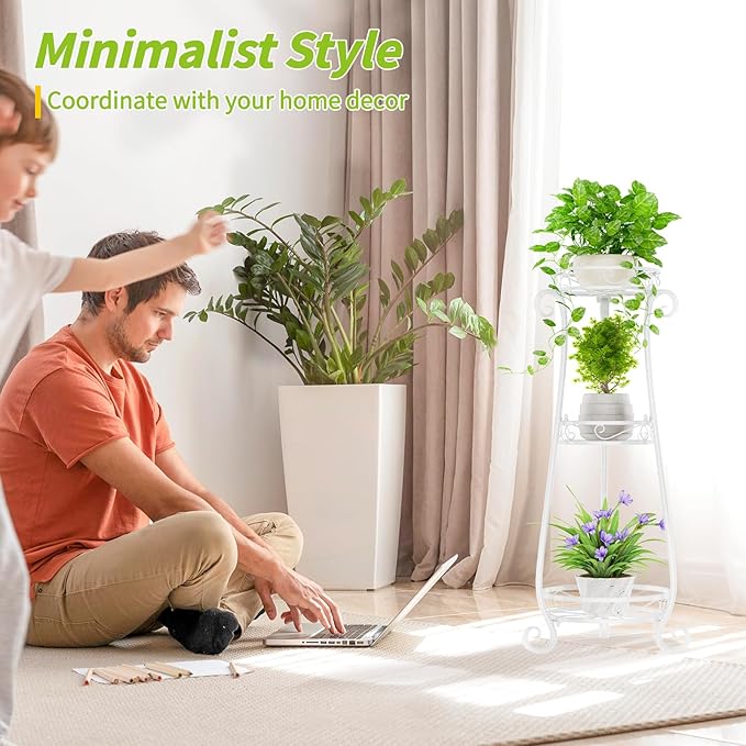 - 【Upgrade 3 Tier Plant Stand】: Provides 3-tier generous storage space for displaying your lovely plants. Thin and tall design is perfect for corners, entryways, gardens, offices or bathrooms without taking up a lot of space. Dimension : 14 * 14 * 34 inch.