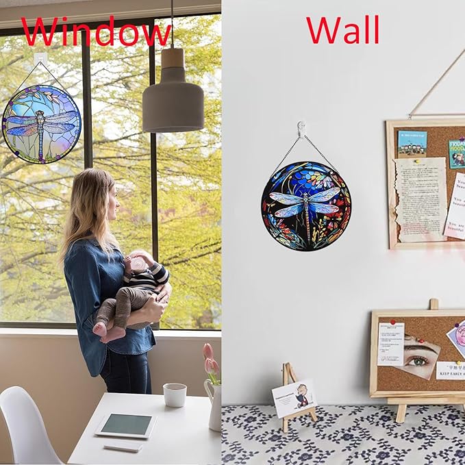 - 【Exquisite Gift】The dragonfly suncatchers for hanging stained glass is a lovely gift for your friends, family, lover, etc. Our dragonfly wall decor would be a great embellishment to your home. Suitable for Thanksgiving Day gifts, Christmas gifts,Valentine's Day gifts, Easter gifts, Mother's Day gifts, and other holiday gifts.
