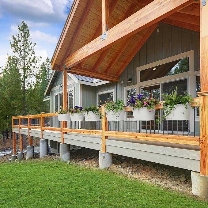 - Discover Simple Outdoor Charm: Embrace the simplicity of adding a touch of nature & farmhouse style to your outdoor space with the white deck railing planter boxes! Each herb planter measures 10.5x5x5.7” without hooks and extends to 10.5x7.2x5.7” with hooks