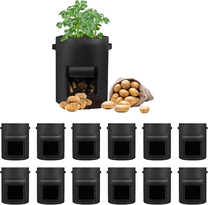 12 Pack 7 Gallon Potato Grow Bags, Heavy Duty Nonwoven Fabric Garden Planting Bag Plant Container with Flap and Handles, Aeration Fabric Pots for Growing Vegetable, Fruits and Flowers