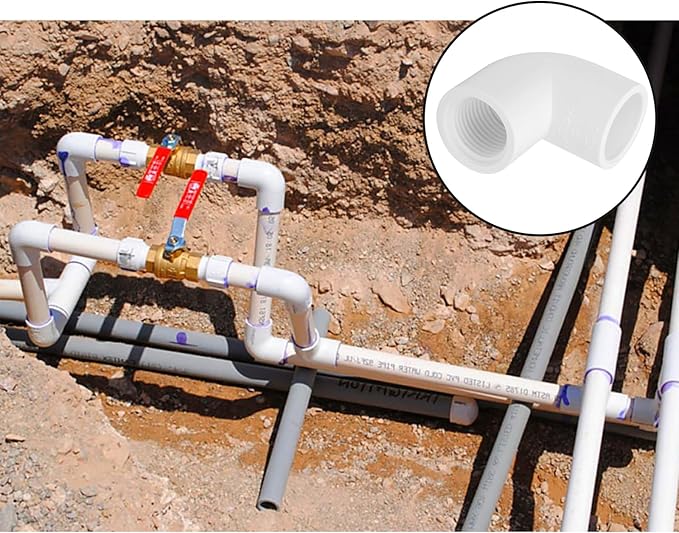 - 【Material】Heavy Duty 1/2 Inch PVC female thread elbow made of high-quality PVC, high-impact strength, resistant to frost and corrosion. Flame retardant material, safe and reliable, long service life.