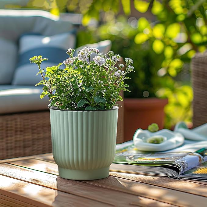 - LONGTIME WATER STORAGE: The double-layer design allows excess water to be stored at the bottom of this plant pots. Water is separated from liner, only absorbed by cotton. The outer pot can hold water which can last 7-15 days. Free of worries of your plants getting dry when you are out of home for a few days.