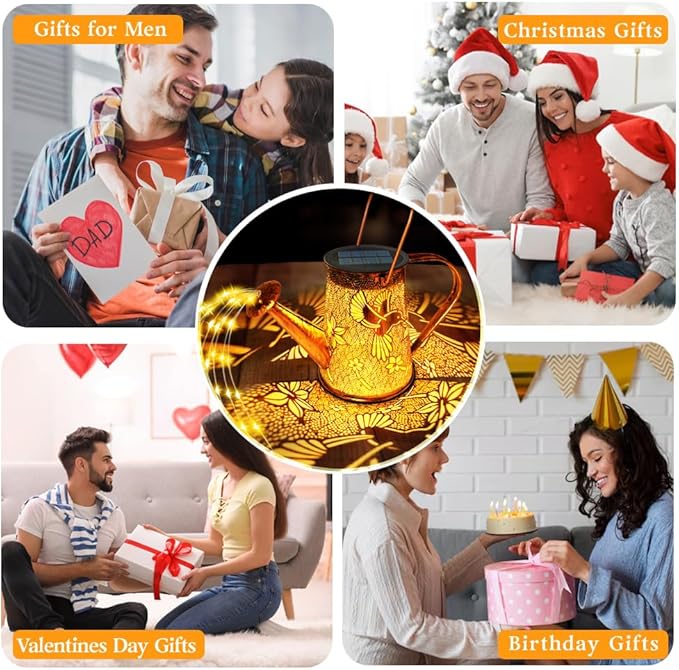 - Great Gift Choice: This unique vintage solar watering can is not only a beautiful decoration for garden, patio and outdoor, but also can be used as an Eid gifts, Mother's Day gifts, Father's Day gifts, Birthday gifts, Valentine's Day gifts, Christmas gifts, gardener's gifts, housewarming gifts for women, men, moms, grandmothers, fathers, wife, daughters, sisters, aunts, girlfriends, boyfriends, or gardening enthusiasts