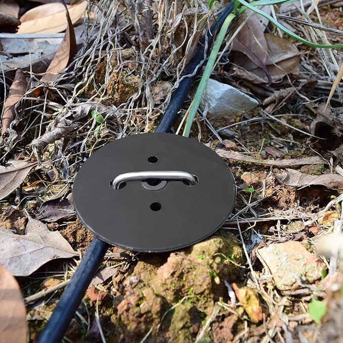 - Packaging and Size: Including 25 x galvanized landscape fabric pins, 25 x round plastic gaskets and 1 x pick hook. The fixing washer can make your project installation firmer, and the pick hook can pull the landscape staples out easily. (Note: To prevent damage to the anti-rust coating on the weed mat pegs, please use a rubber hammer for installation.) Floor mat diameter 2.35”; thickness 2mm, pore diameter 6mm, installation pitch 1”, staples length in 6 inch