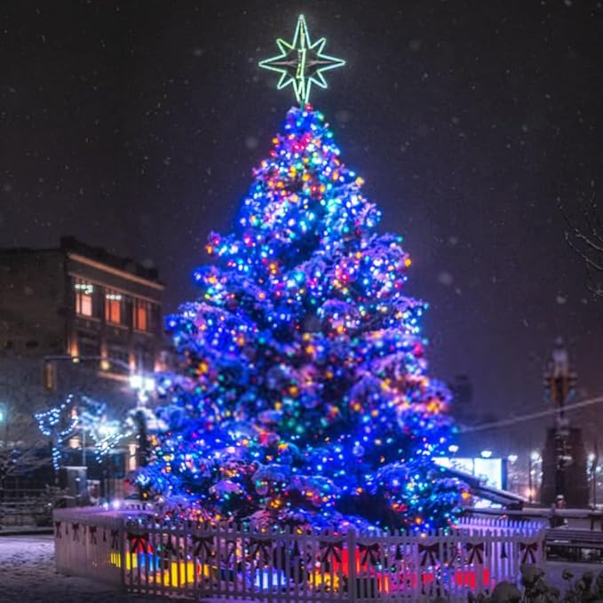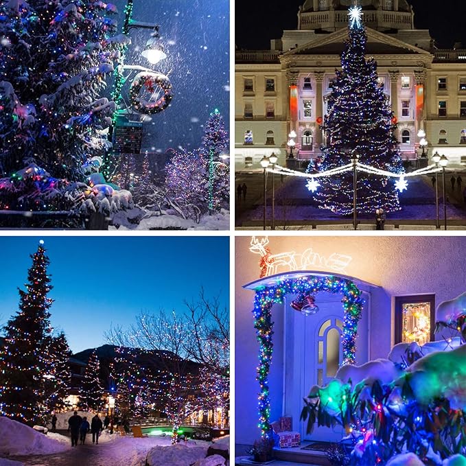 - [Solar Powered & Auto On/Off]: This string lights for outside is solar powered and waterproof, no electricity cost. Larger Christmas solar panel with quick charging technology, bring you higher solar energy conversion, it can work up to 10-12 hours after being fully charged (8 hours). Just place the battery panel in sunny area, it will automatically charge at daytime and light up at night.
