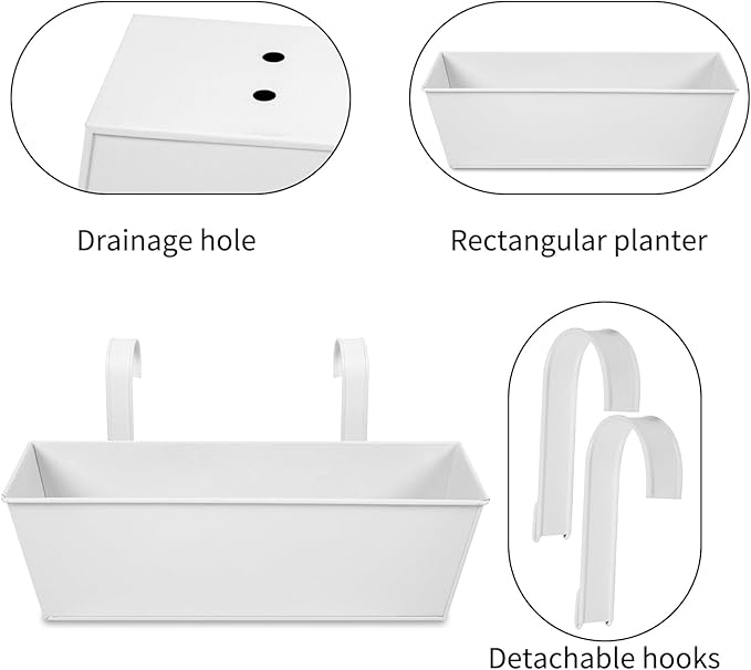 - MAXIMIZE YOUR SPACE: Our balcony railing planters are designed to help you make the most of your porch or patio living space. With their rectangular shape and drainage holes, you can grow strong, healthy plants easily.