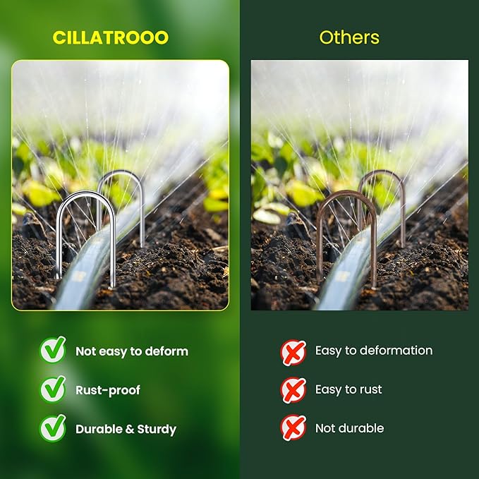 - VERSATILE : Garden Staples Suitable for family houses, schools, outdoor activities, Christmas decorations, and golf courses. Using galvanized Yard stakes nails anchor landscape fabric nails, secure and install various items such as weed barriers, sod, Christmas tents, fences, cages, netting, tarps, hoses, wires, Christmas lawn, and other items on top.