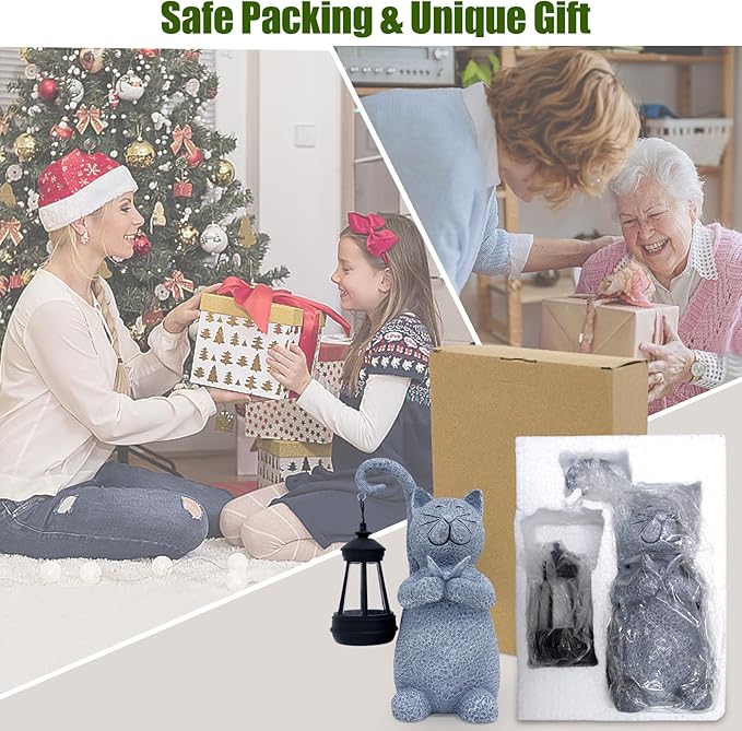 - Perfect Cat Statue:Solar cat garden statue is very detailed and colorful. The lights are pretty and bright. Cat garden decor does not take up space and can be ued in the garden, windowsill, indoors to make your life colorful.