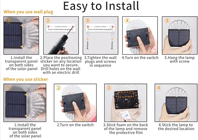 - 【Easy Installation】No complex wiring. Our solar deck lights outdoor have two installation methods, you can either place it vertically or horizontally. And you can use the screws with anchors or adhesive tapes to install them, which are all included in the package.