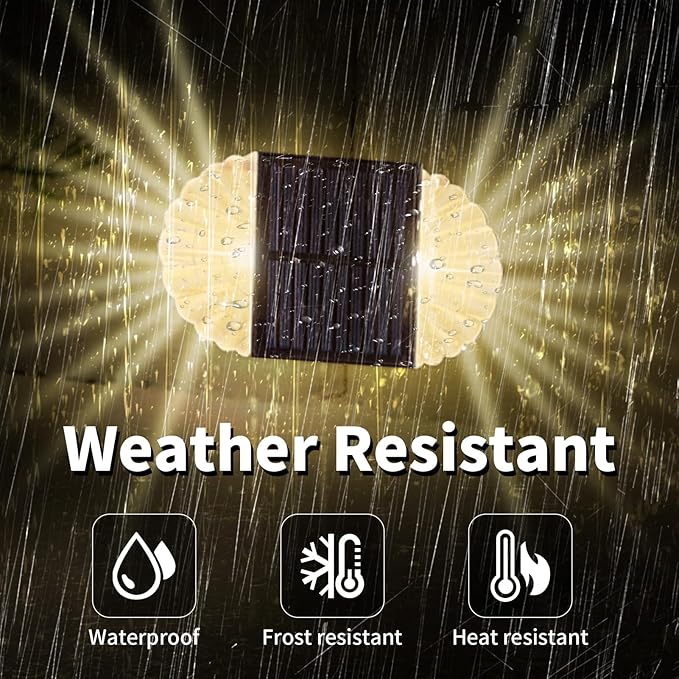 - 【Two Sides Lighting】Outstanding in sustainability, helping you better embrace nature. The solar seashell patio lights are unique in design, they can emit beautiful sea-shell shape light on both sides in the evening. Even during the day the fence post lights look like crystal clear gems. And the sea-shell shape can also be a backyard decoration in daytime.