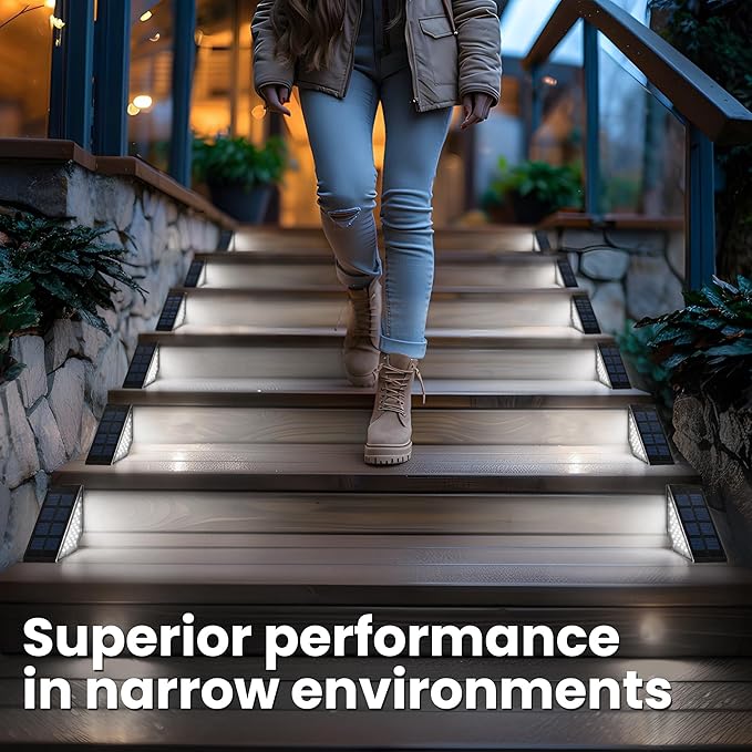 - 【Ultra-thin Solar Panels & Safer】The solar outdoor lights with ultra-thin solar panel can prevent tripping and adapt to narrower stairs. Better integrated with stairs, enjoy the perfect combination of functionality and beauty
