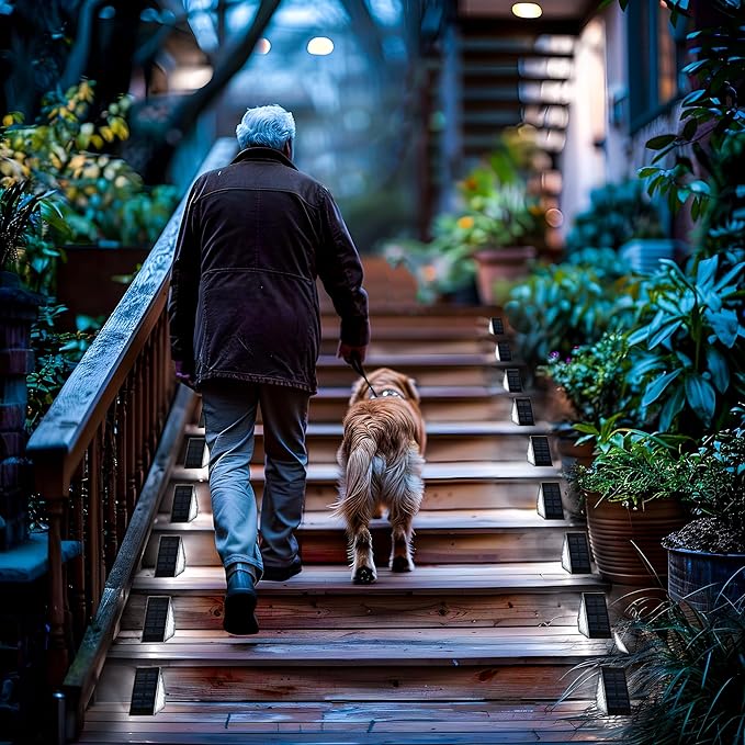 - 【Waterproof & Durable】This solar stair lights use high-quality ABS material and solar panel, waterproof switch and waterproof IP67, witch can withstand various extreme weather such as rain and snowweather
