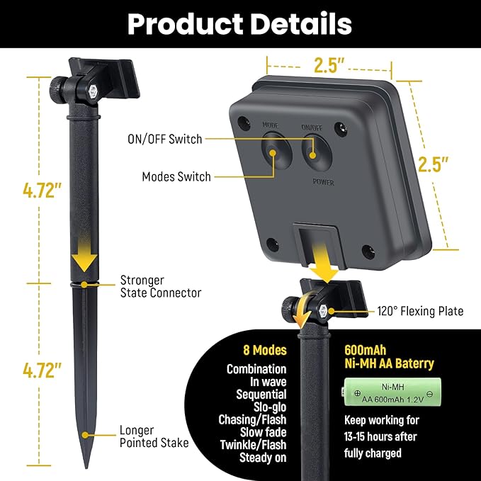 - Versatile Lighting Modes: Cater to every mood or event with 8 versatile lighting modes. From steady warm white for romantic outdoor settings to flashing lights for festive solar lights outdoor string during Christmas and holiday decor, our memory function of the fairy lights solar ensures your favorite settings are saved, adding convenience and charm to your outdoor ambiance.