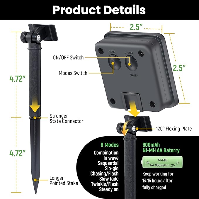 - 【Versatile Lighting Modes】 Cater to every mood or event with 8 versatile lighting modes. From steady warm white for romantic outdoor settings to flashing lights for festive string lights for outside during Christmas and holiday decor, our memory function of the solar string lights outdoor ensures your favorite settings are saved, adding convenience and charm to your outdoor ambiance.