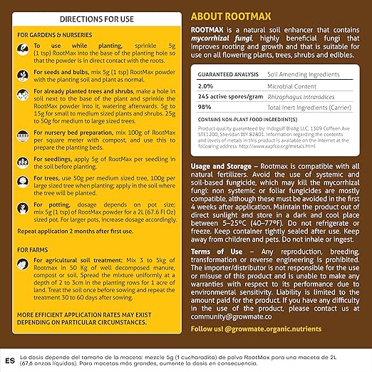 - 【 Reduce Usage of other nutrients 】Rootmax helps your garden to use less fertilizer and plant food. Root grower for plants promotes root growth. Moreover, Mycorrhizal Fungi Powder can dissolve Phosphorus from the soil and deliver it to the plant's roots