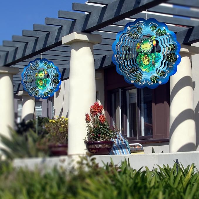 Frog Wind Spinners 3D Hanging Wind Spinner Frog Ornament Gifts for Women Mom Grandma,12inch Metal Wind Kinetic Sculpture for Outdoor&Indoor Decor, Yard Art, Garden Decoration