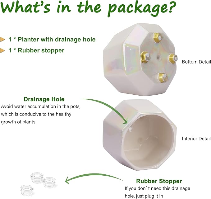 - Planters for indoor plants - Comes with a drainage hole, mesh pad and rubber stopper for easy plant care