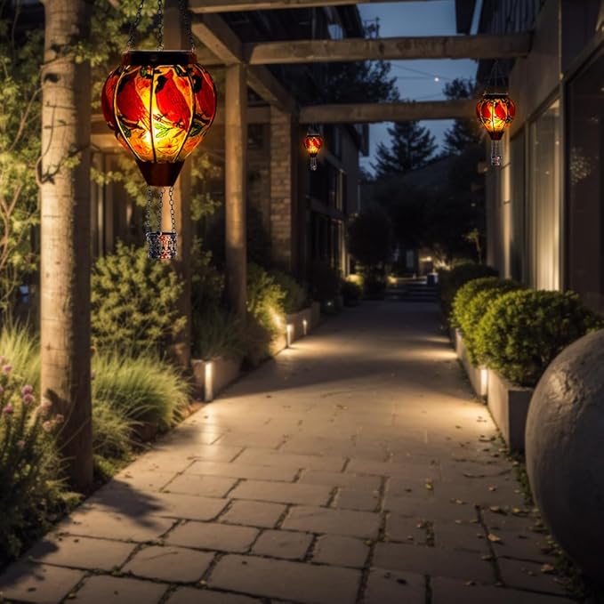 - Hot Air Balloon Solar Lantern: The solar lanterns outdoor waterproof is made of glass with cardinal pattern and lifelike flame light. As night falls, the bright colors and flickering flame light are like a rising hot air balloon, creating a stunning visual effect. This lanterns decorative outdoor's light adds warmth and comfort to your garden, patio, pathway, and more