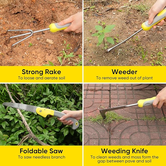 - 【Gardening Choices for Women & Men】Ideal garden choices for gardeners,suitable for both men and women.Perfect gardening choices for all celebrations and important festivals or other holidays.... This garden tool kit is professional and won't harm you. Because we have durable gloves, wearing these gloves before doing any planting work,you can easily create a wonderful garden with these gardening tools! Here are all the garden tools you need for gardening work