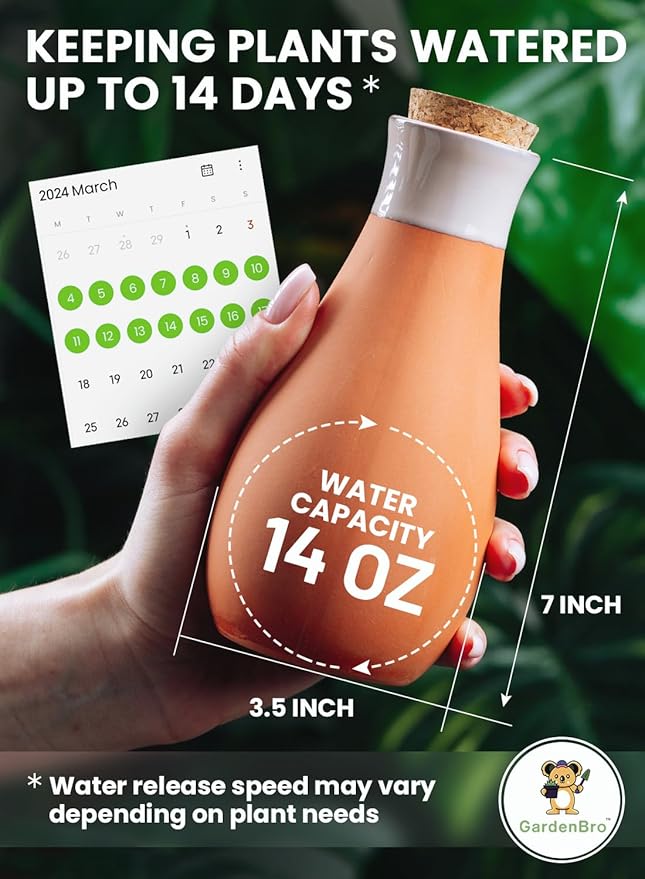 - 🌿 EASY FOR TRAVELERS: Up to 2-Week Water Supply Keeps Plants Healthy, Prevent Overwatering. Dependable Self Watering Terracotta Pot Waters Your Plants When Away.