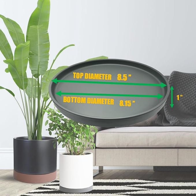 - Multi-size plant dish : Plant Flower pot saucers, offers a variety of small, large, extra large size plate plant saucer and flowerpot tray color, 4/4.7/5/5.6/6/6.4/6.6/7/8.5/9/10/11/12/12.33 inch plant saucers, from small to large outdoor indoor plants garden. Please compare the size of the plant bottom of the pot with the size of our plant saucer before purchasing to ensure that you can match the right pot, and the large size plant saucer pot tray is compatible with the small size pot