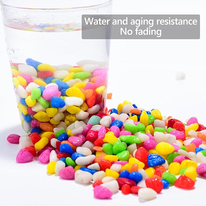 - Eco-Friendly Rocks: Our colorful pebbles are made of natural stones and dyed under high temperatures. The color won't fade away over time for long-lasting beauty. They are eco-friendly and completely safe to use around pets and children.