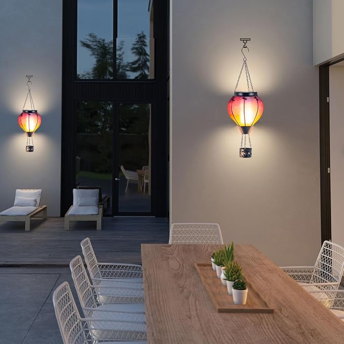- 【Wide Application】The beautifully crafted outdoor hot air balloon solar flickering flame can add elegance and color to your outdoor space. You can hang hot air balloon solar light on porches, trees, pergolas, balconies, or ledge.