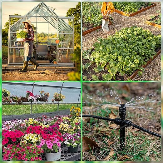 - Widely Used: The watering system is suitable for greenhouse, lawns, gardens, flower beds, raised garden beds, ground cover, landscaped gardens, vegetable gardens, herbs gardens, etc. It makes for an amazing gift idea for friends and family who are gardening enthusiasts.