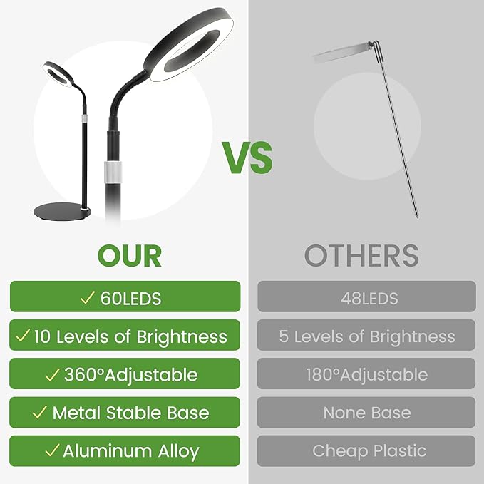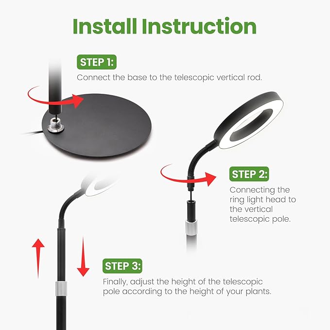 - Desktop Grow Light with Telescope Stand: Equipped with a sturdy metal base that keeps the plant grow light stable. Easily adjusts from 13.7 inches to 24.2 inches, with a 360-degree flexible gooseneck. It provides a wider lighting coverage area